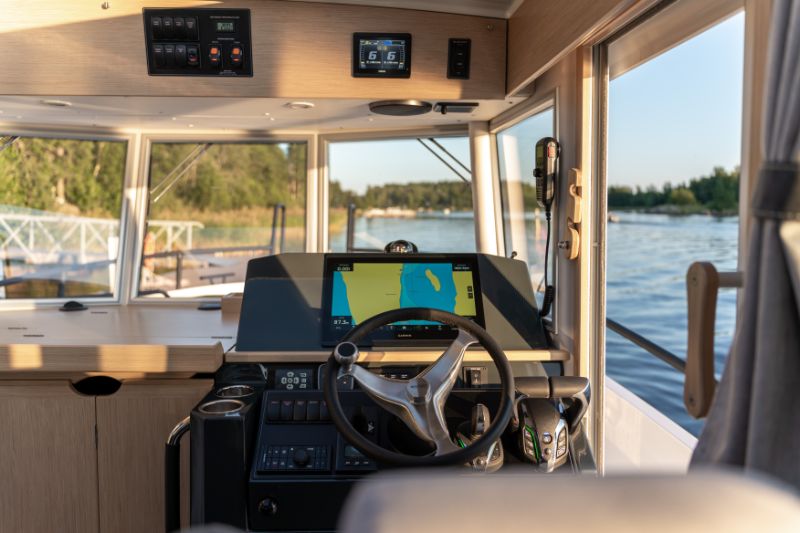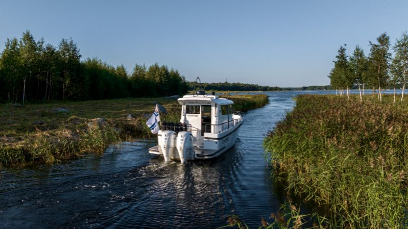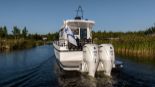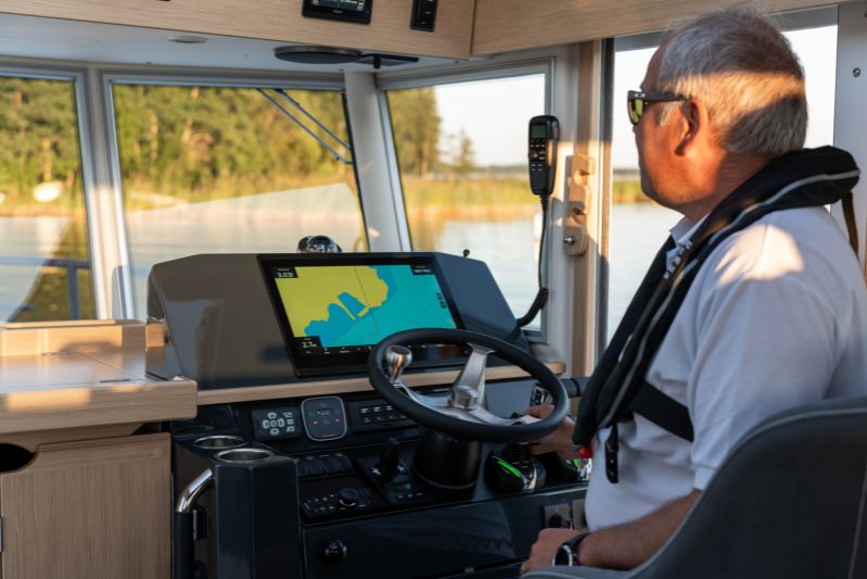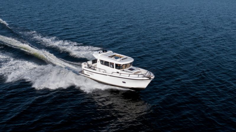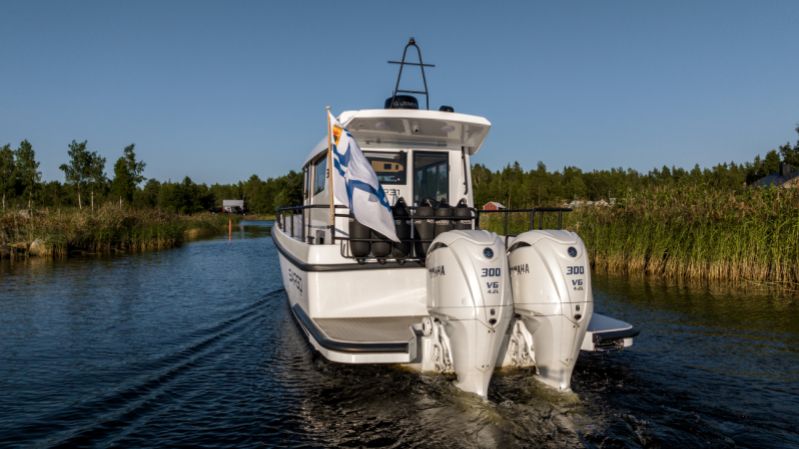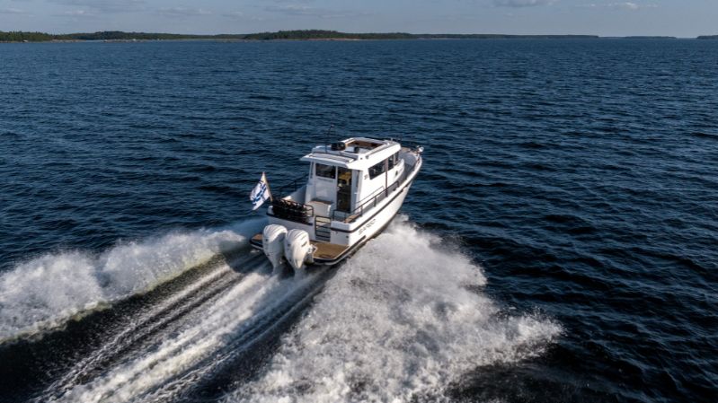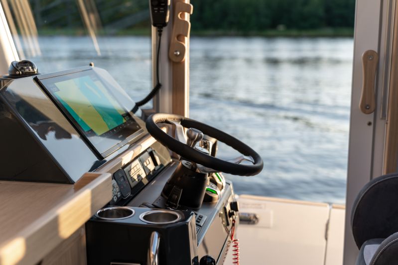 Vår 31-fotare är robust, säker och samtidigt lätt att hantera. Skjutdörrar på båda sidor gör det smidigt att förflytta sig och underlättar vid snabba hamnmanövrar. Dubbel utombordsinstallation ger dessutom ett stort förvaringsutrymme under akterdäcket. Föraren uppskattar den flexibla förarplatsen med justerbar ratt och instrumentpanel, vilket gör det möjligt att köra bekvämt både sittande och stående.