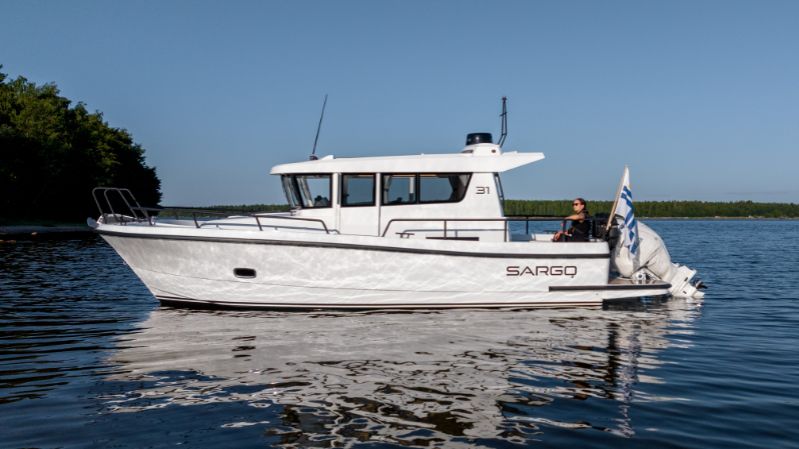 Den nya Sargo walkaround-modellen har ett helt däck i ett plan, vilket gör det enkelt och säkert att röra sig ombord. Sidodörrarna och den praktiska akterdörren skapar tillsammans en rymlig hytt och en flexibel akterdel som öppnar upp för fler aktiviteter. Ett generöst pentry och två sovkabiner gör Sargo 31 till en båt som fungerar utmärkt året runt.