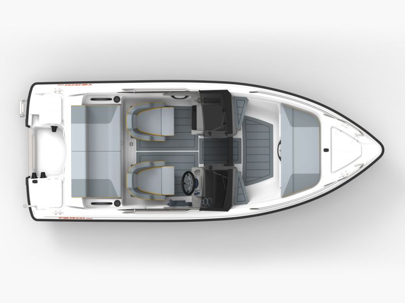 Båtens dubbla pulpeter, som flyttats längre förut, samt till standardutrustningen tillhörande mellandörr bildar ett skyddat utrymme i aktern för upp till fem vuxna. De två bekväma helstoppade båtstolarna samt den breda akterbänken skapar utrymme för flera personer. Båtens styrpulpeter har designats med tanke på nutidens användare. I pulpeterna finns god förvaring för mindre egendom samt för dricksflaska. Därutöver har pulpeterna eluttag, två låsbara handskfack samt på instrumentpanelen plats för ett kartplotter. I fören finns ett stort förvaringsutrymme under förtoften samt en låda för ankare/tampar, och i aktern finns förutom det rymliga stuvutrymmet under akterbänken även två lådor för tampar och ett kapellgarage. Alla stuvutrymmen, förutom replådorna, är möjliga att låsa.
